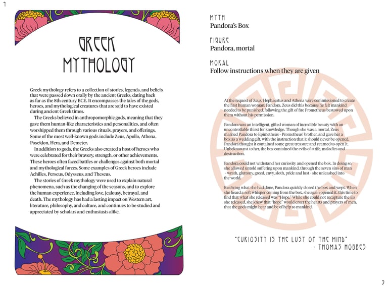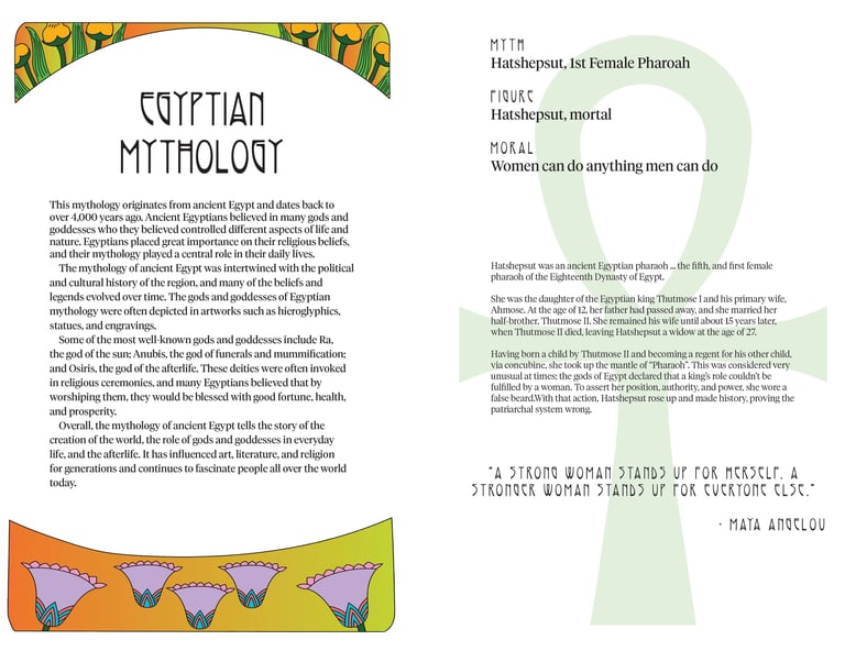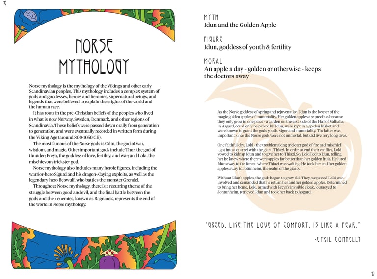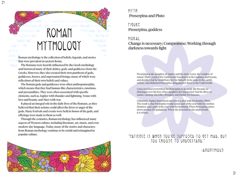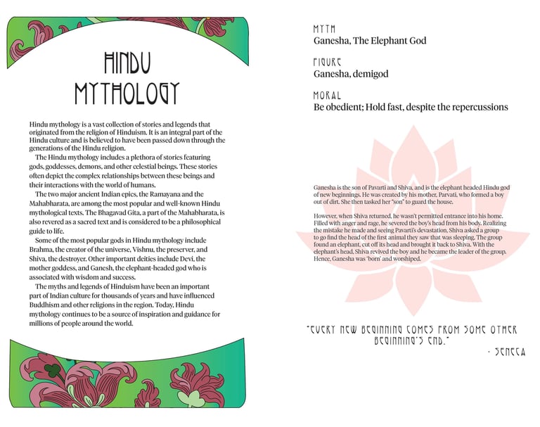 For my senior thesis project, I focused on showcasing my love of mythology through an editorial design called The Morality. The Morality is a periodic publication that not only delves into the significance of various global mythologies; this book showcases mythological gods, demi-gods, heroes, heroines, and mortals, to draw inspiration from their age-old stories for present day life lessons. The mythologies that I focused on for the first book are the following: Greek, Hindu, Egyptian, Norse, Slavic, and Roman.